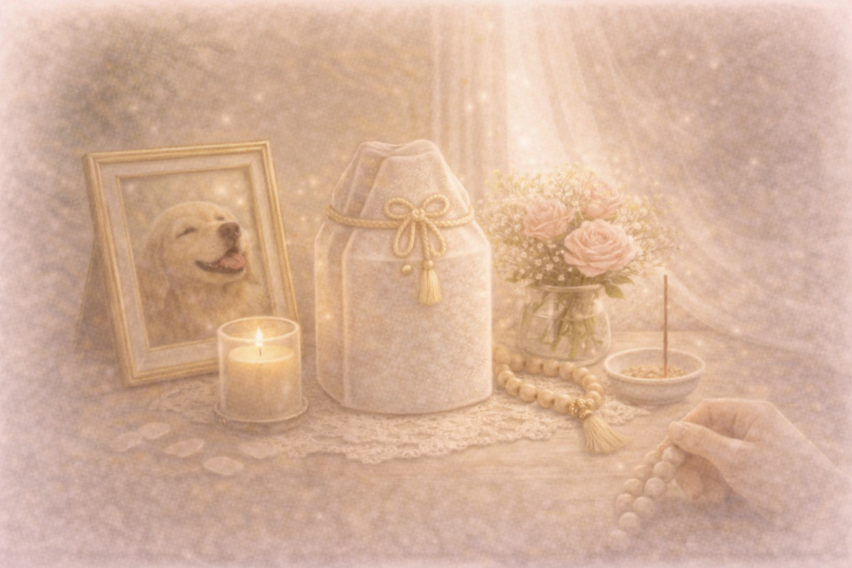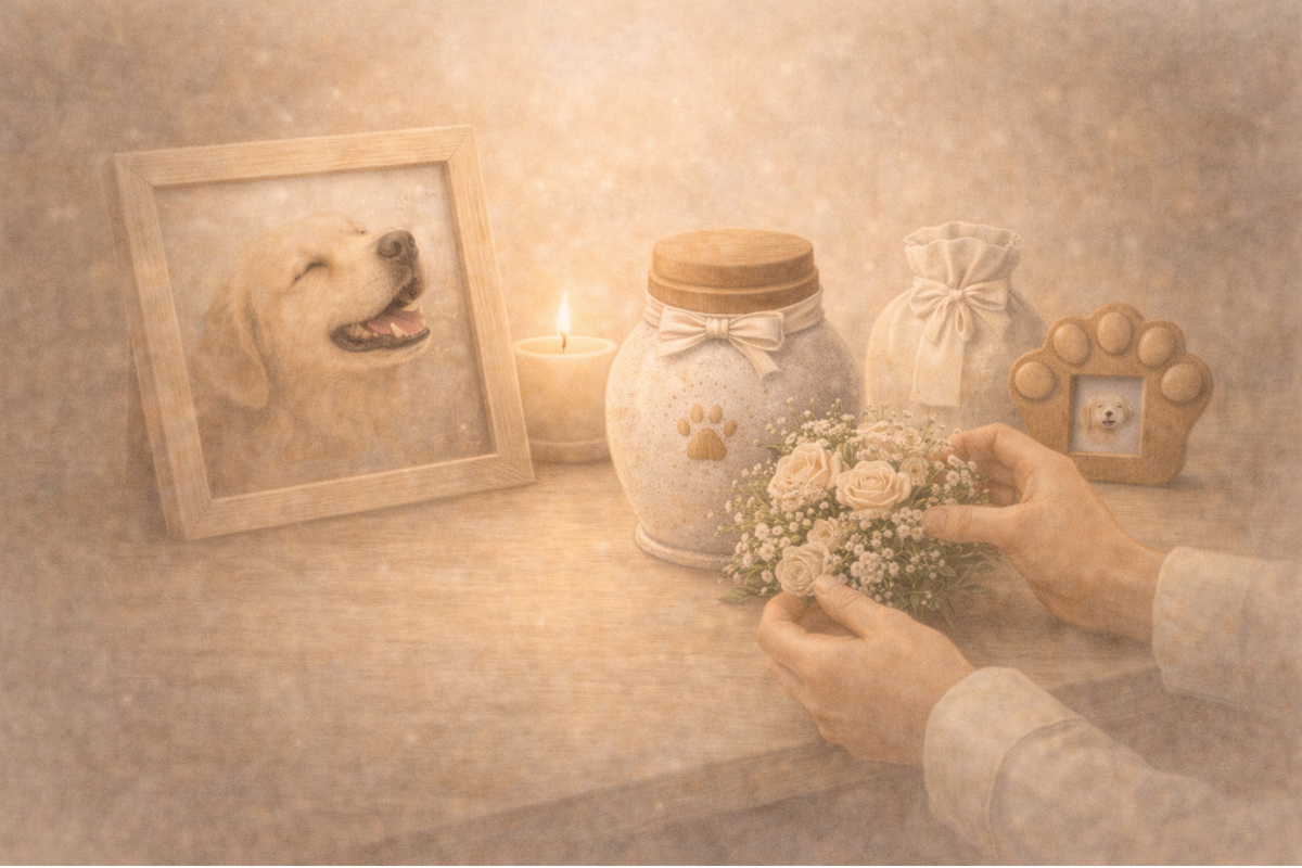 ペットの手元供養とは、遺骨や遺灰、思い出の品などを自宅や手元などで保管し、身近に感じながら供養する方法のことです。